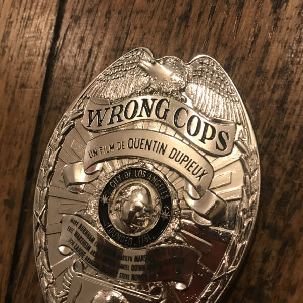 Broche style écusson/plaque de police. Objet collector en édition très limitée, à l’effigie WRONG COPS, un film de Quentin Dupieux.